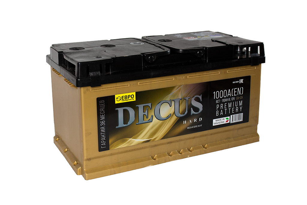 Бренд Decus – топовый продукт в линейке Елабужского аккумуляторного завода, самого нового предприятия подобного профиля в России (начало работу в 2017 году). АКБ относится к премиум-классу, выпускается по технологии ‘кальций-кальций’. Стоит обратить внимание, что среди кальциевых батарей аналогичной емкости, вес аккумулятора Decus будет одним из самых высоких. Это свидетельствует о максимальном заполнении корпуса пластинами и максимальном сроке службы среди АКБ аналогичной емкости.