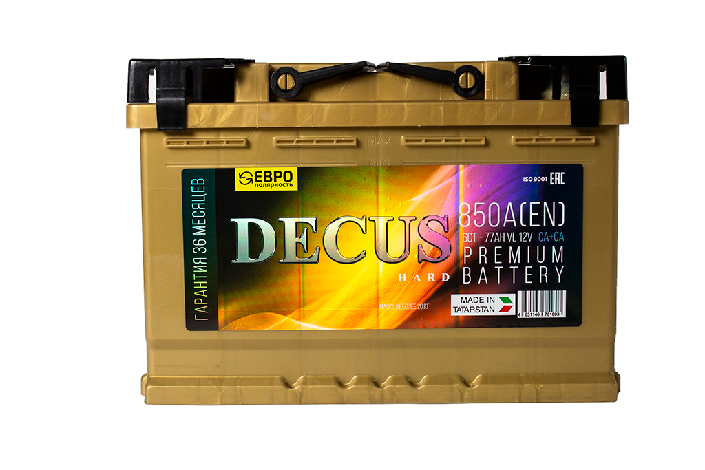 Аккумулятор Decus емкостью 77 ач – кальциевая батарея, которая производится на Елабужском аккумуляторном заводе. Предназначена для эксплуатации на автомобилях российского и зарубежного производства. Это АКБ премиум класса, которая обеспечивает уверенный пуск и высокие рабочие характеристики. Заявленный пусковой ток превышает показатели конкурентов, что позволяет говорить об этой автомобильной батарее, как об одной из самых мощных в своем сегменте.