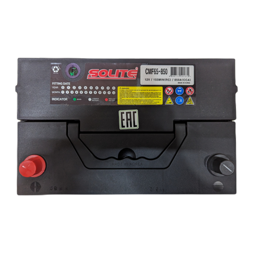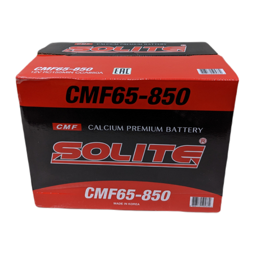 Аккумулятор CMF 65-850 – кальциевая свинцово-кислотная батарея корейского бренда Solite. Аббревиатура CMF (Complete Maintenance Free) обозначает, что батарея – необслуживаемая, BCI (Battery Council International) – что аккумулятор соответствует американским стандартам (стандартам международной ассоциации производителей АКБ). Изделия стандарта BCI по большей части соответствуют азиатским типоразмерам JIC. Аккумулятор данного типоразмера идеально подходит для Ford Explorer.