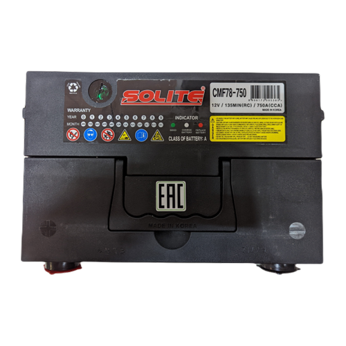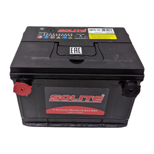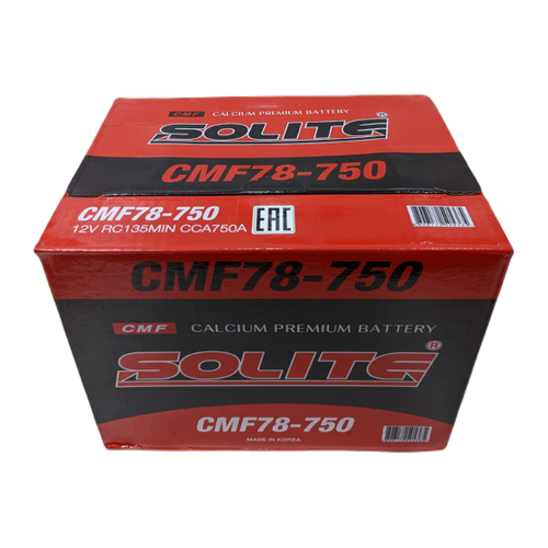 Аккумулятор CMF 78-750 - это кальциевая свинцово-кислотная батарея корейского бренда Solite. Аббревиатура CMF (Complete Maintenance Free) означает необслуживаемую, а BCI (Battery Council International) - соответствующую американским стандартам (стандартам Международной ассоциации производителей аккумуляторов). Продукция стандарта BCI в по большей части соответствует типоразмерам JIC.