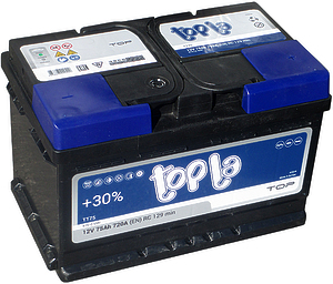 Аккумуляторы Topla выпускает словенская компания TAB - курупный европейский производитель аккумуляторных батарей. На 4 современных заводах выпускается большой ассортимент свинцово-кислотных, гелевых и литий-ионных батарей. Батареи Topla изготавливаются по просечно-вытяжной технологии, это высококачественный продукт для автомобилей любого класса. Существует несколько линеек аккумуляторов Topla: Energy, Top, Top JIS, EFB Stop&Go, AGM Stop&Go, Energy Truck, Top Truck, Stop&Go Truck, HR (Hot Region).